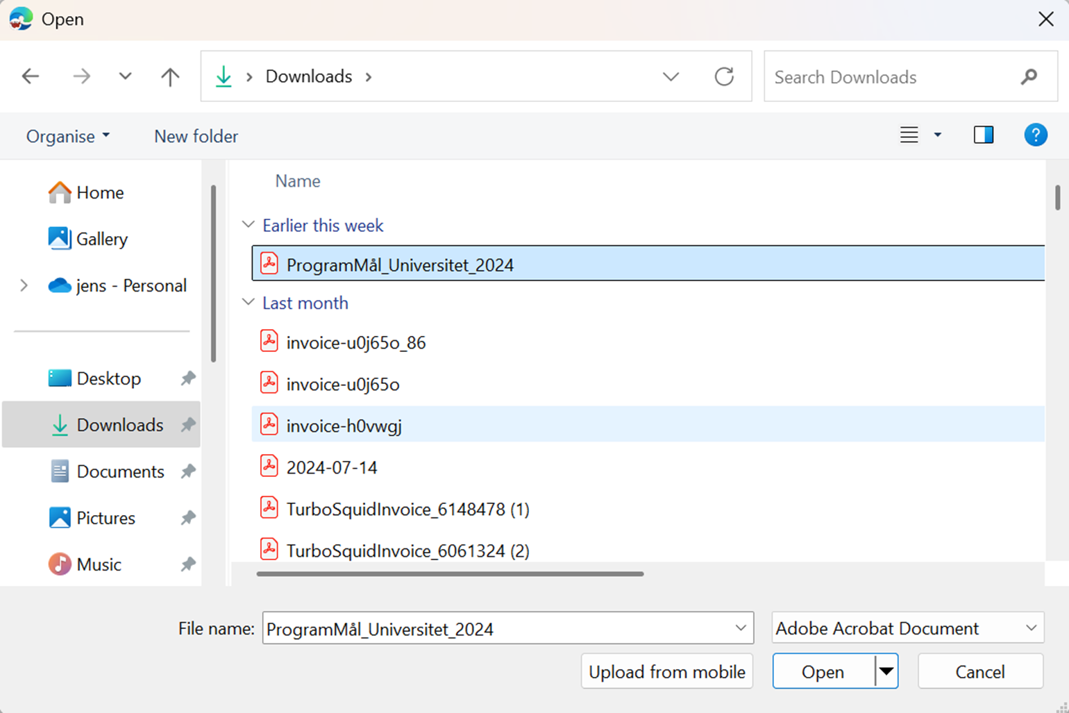 - Select your <program outcome file> from the browser window