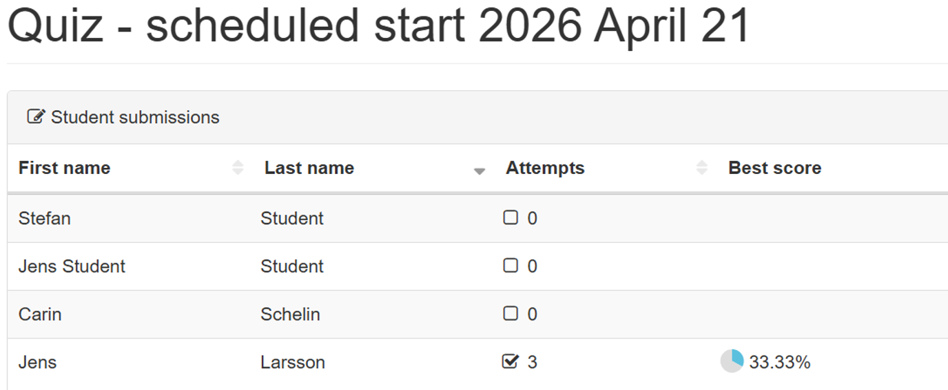 If you switch over to the Submissions tab, you will see how many times the students have taken the quiz, at the Event you have made quizzes available.