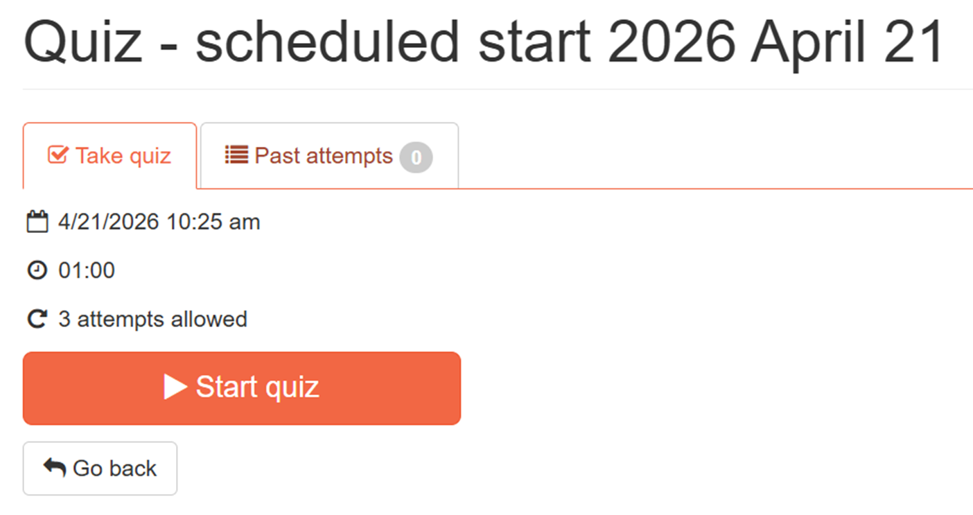 Control the usage of the quiz by adding scheduled starts, duration and maximal attempts.