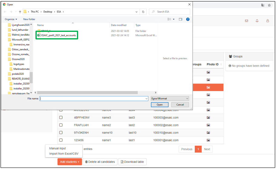 - Klicka på Add students & väljImport from Excel/CVS